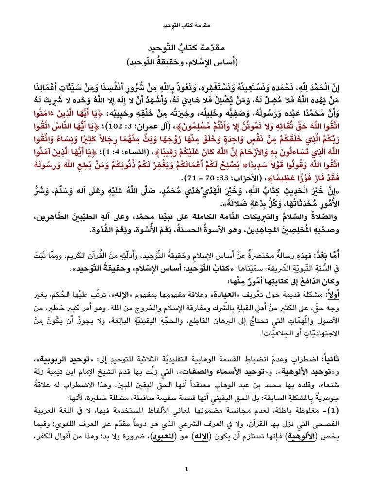 التوحيد أساس الإسلام وحقيقة التوحيد