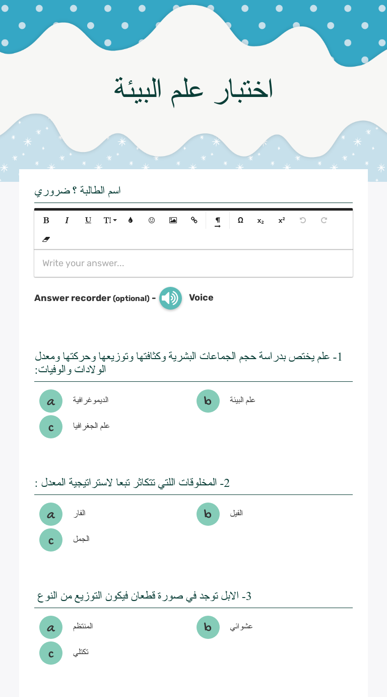 اختبار علم البيئة Interactive Worksheet By Nouf 3 Wizer Me