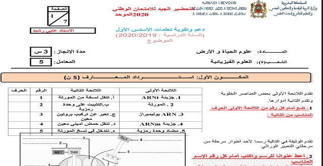 امتحان تجريبي في مادة علوم الحياة و الارض الثانية باك 2020