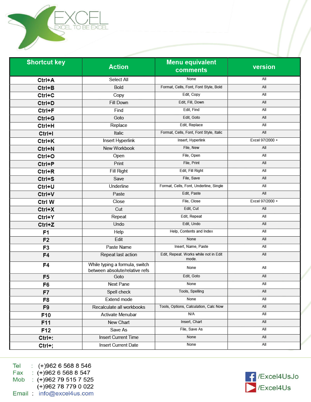 اختصارات الاكسل Excel Shortcuts Excel4us