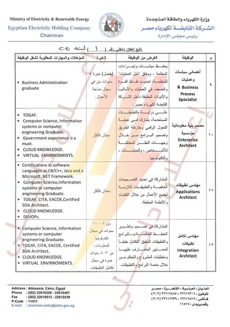 اعلان وظائف وزارة الكهرباء الشركة المصرية لنقل الكهرباء 18 7 2020