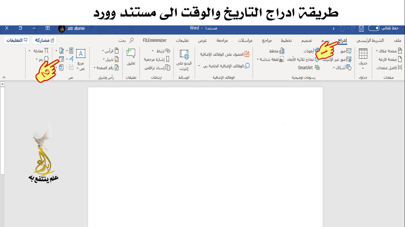 م عبدالعزيز الصنيع On Twitter شرح طريقة ادراج التاريخ او الوقت او كلاهما في مستند الوورد