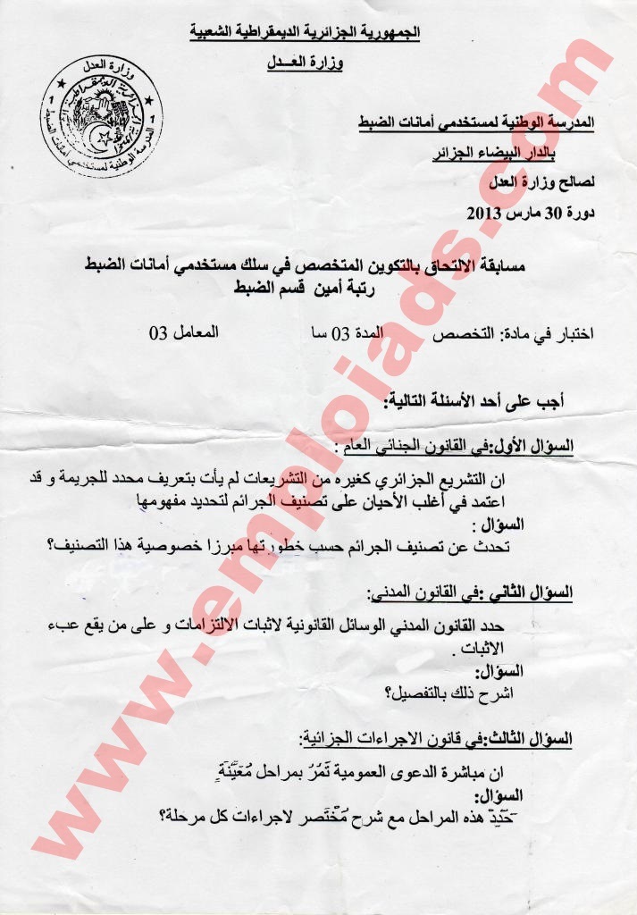 اسئلة مسابقة أمين ضبط ومعاون أمين ضبط و أمين قسم ضبط