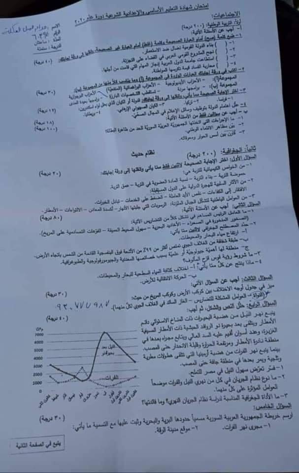 اسئلة امتحان الاجتماعيات للصف التاسع شهادة التعليم الأساسي دورة 2020 نظام حديث وقديم