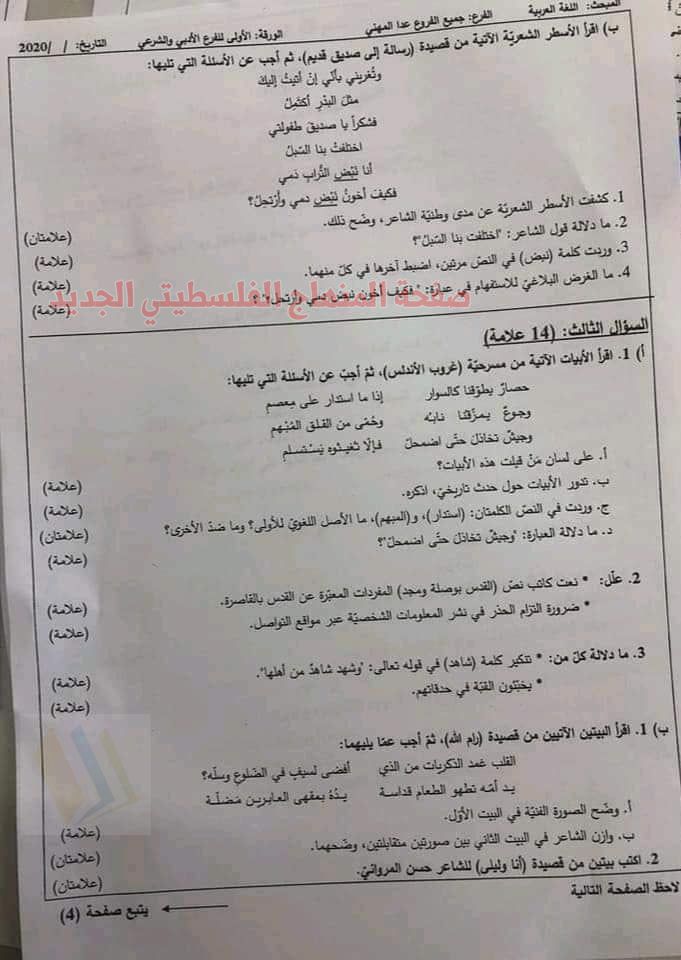 الاجابات امتحان اللغة العربية اللجنة للتوجيهي 2020 المنهاج الفلسطيني الجديد