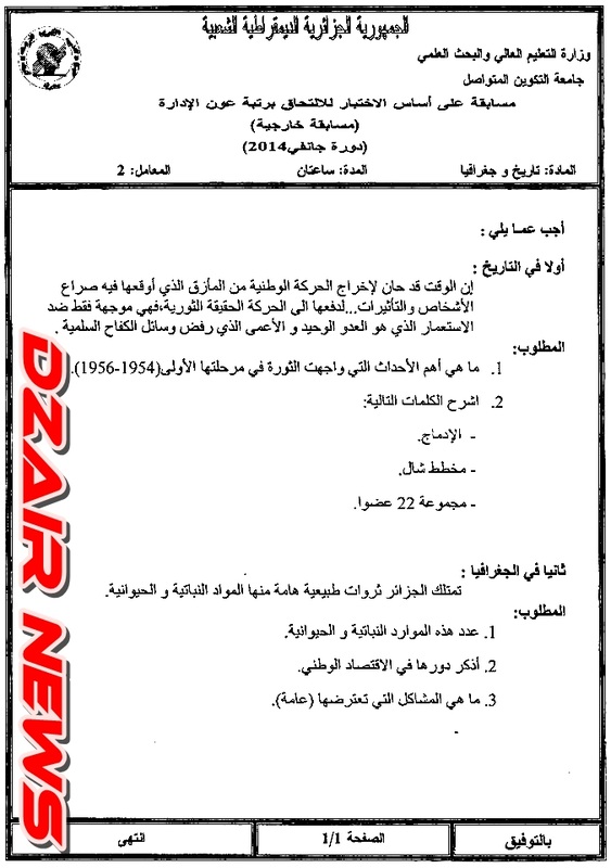 موضوع اختبار التاريخ والجغرافيا لمسابقة أستاذ التعليم المتوسط 2017 مدونة التوظيف في الجزائر Dzemploi