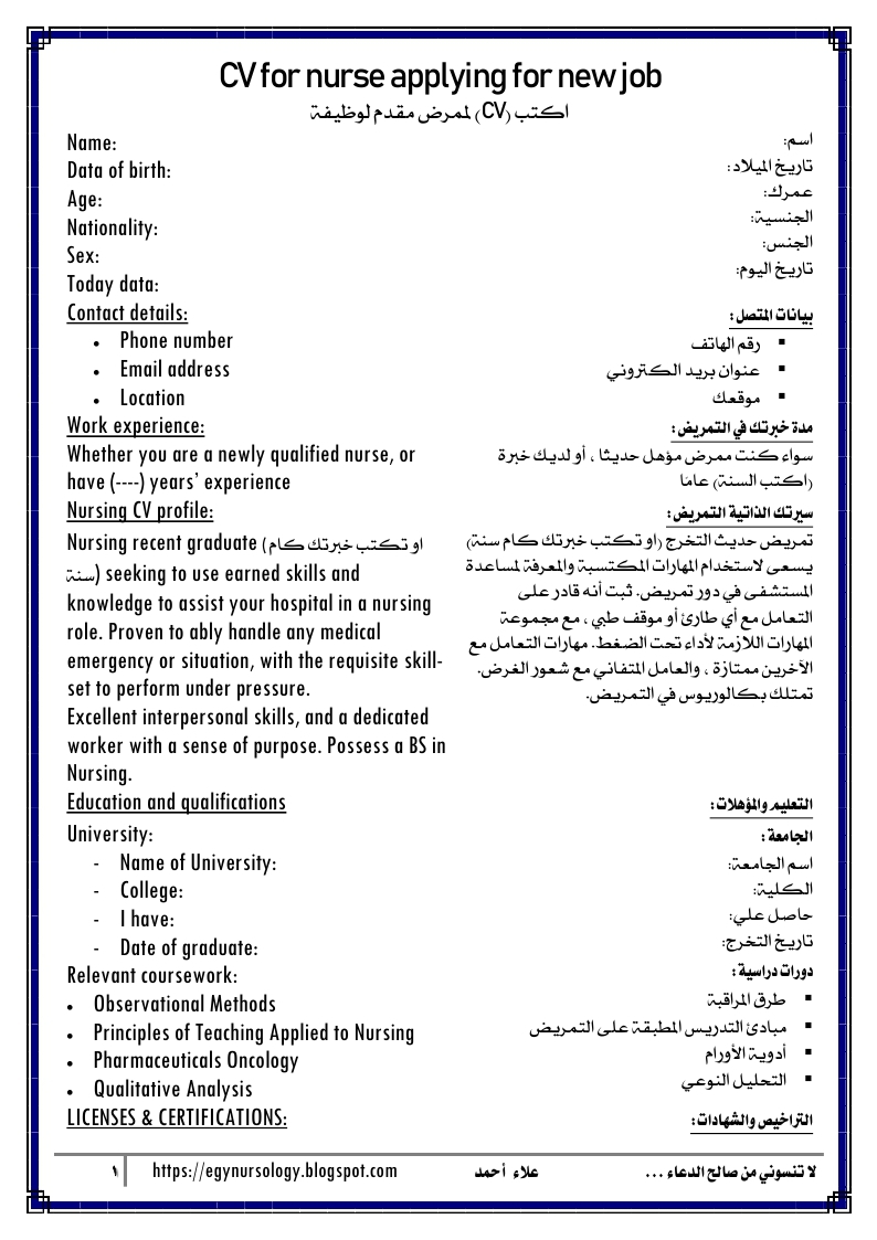 Cv For Nurse Applying For New Job Egynursology