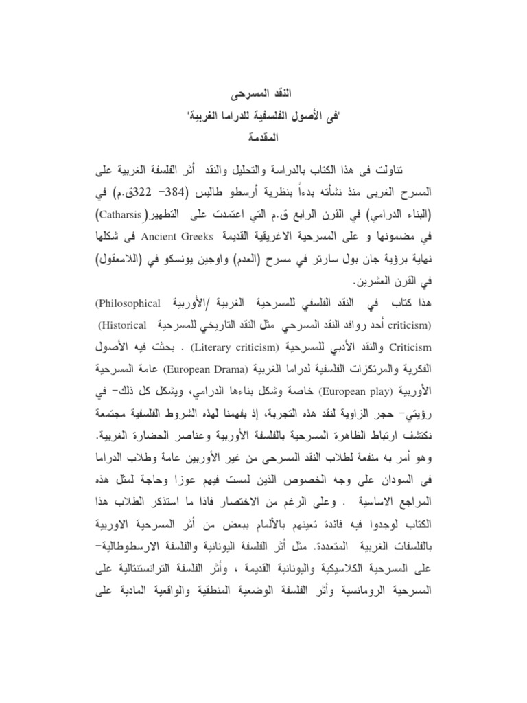 النقد المسرحى فى الأصول الفلسفية للدراما الغربية Pdf