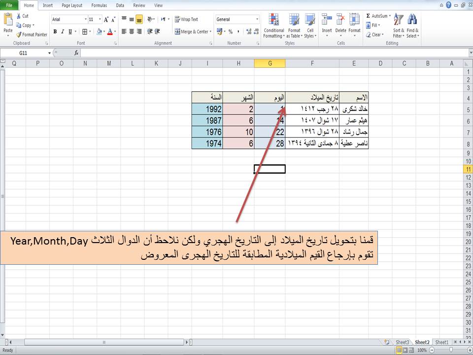 شرح الدوال Year Month Day مايكروسوفت إكسل
