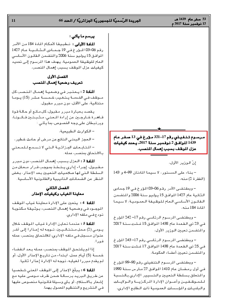 مرسوم تنفيذي رقم 17 321 مؤرخ في 02 11 2017