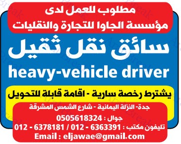 وظيفة في العزيزية جدة مطلوب للعمل بجدة سريع