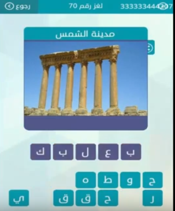 اجابة سؤال مدينة الشمس من لعبة وصلة المجموعة الثامنة لغز رقم 70 صقور الإبدآع